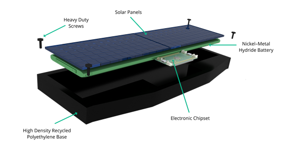Instalación sencilla, resistente a condiciones adversas y vandalismo, funcionamiento autónomo gracias a energía solar.